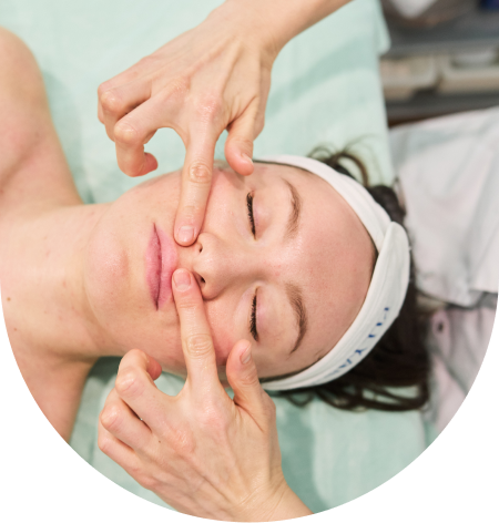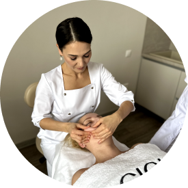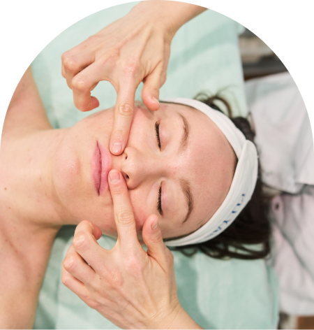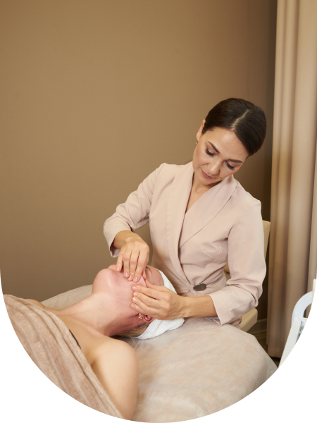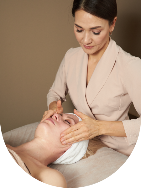 Во время сеанса идет работа не только с лицом, но и с телом: выполняется лимфодренаж и расслабление натяжений в шее, активно прорабатывается шейно-воротниковая зона и зона декольте, расслабляется затылок и улучшается движение по кровеносным и лимфатическим сосудам.